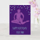 Skicka perfekten till synkroniserade swimmers- och synkronträningskort med det här hälsningskortet som är redot som ska anpassas med ditt eget meddelande på både framsidan och insidan. Den innehåller en illustration av en synkroniserad simmare i ljusstark lila mot en mörk lila bakgrund med polka prickaccents och akva- eller ljusblå bokstäver.