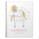 En färglös och vismisk anteckning bok. Den har en vattenfärgad illustration av en vit unicorn med regnbåge och ballonger. Personlig genom att lägga till namn och andra uppgifter. Den här enmajsdatorn med vattenfärg är perfekt som personlig.