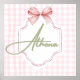 Lägg till en touch av söthet och elegans i din lilla enas rum med detta personliga nurserytryck för babyflickor. Med en mjuk rosa gingham-bakgrund, en delikat rosett och ett anpassningsbart namn i ett charmerande skrivstil, är detta konstverk den perfekta avslutande detaljen för alla nursery, lekrum eller sovrum.