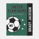 Personligens fotbollsfilt för fotbollsspelare när de inte gör mål på fält, och för deras föräldrar att stödja sina barn och vara varma för kyliga spel! Gör en unik laggåva för reseturneringar. Utformningen har en fotboll som anpassats med spelarens enhetliga nummer, anpassningsbar för spelarens förnamn och efternamn samt modern text för fotbollslaget namn. Snyggten och den moderna designen har en sportig, varierande, tunn stil och enkelt vågrät rand med stjärnaccenter. Ordningen färg för grönt av skog, svart och vitt kan ändras för att samordna med ditt team färger.