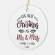 Tvätta vår första jul som Mr. och Mrs. prydent har söt-manustypografi och holly. Anpassa med ditt namn och året du gifte dig med.