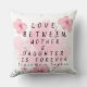 Personlig fotografier av blommor från mor och dotter rosa och ro keepsaké mors dag dekorativ kudde för mor-gåva från dotter till mamma med eget namn och ett kort-meddelande för morsa på baksidan av kudden.