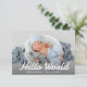 hej världens moderna fotoskapelse, Personlig Birth Anouncement Cards, Elegant Baby Photo Card Design, Newborn Firande, Anpassade Templates. Perfekten är ett sätt att din nyaste familjs glädje med vänner och nära och kära
