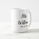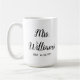 personlig Ber ditt datum, förlovning-gåva till brud bröllop, present till brid bröllop-gåva, monogram efternamn för nyare, svart och vitt kalligrafskript, möhippa-gåvor nyligen införda, bridgåvor ny gifta mugg, bachelorette-fest Fru mugg, anpassningsbar mugg tea mugg honeymoon, bride fiance födelsedagspresent