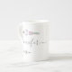 Den här eleganten och det moderna teet mugg är en underbar souvenir och användbar gåva till din möhippa te party. Föreställ er att era gäster hittar sina ställe på bord och att de är glada över att upptäcka att deras te kopp har varit personlig för henne. Utformning av blommor i nyp, grått, vitt och grönt.