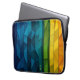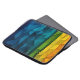 en elegant och modern personlig laptop sleeve med en kompakt geometrisk utformning som består av djupblått, tealt och framväxande nyanser. De vinkelformade sidorna skapar en djup och sofistikerad känsla, medan ett lodrät på högerna kant lyfter fram det anpassade namn i ett rent gult typsnitt. Kombinationen rik och skarp design färg ger en inslag och snyggt som ser ut som contemporary för personlig eller perfekt professionell.
