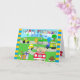 Det här söta handritade kortet visar en liten pojke och flicka som åker i en bil med ett allmänt pojktema med verktyg, traktorer, lastbilar och bilar.