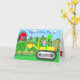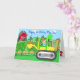 Det här söta handritade kortet visar en liten pojke som kör en traktor med ett pojktema med verktyg, traktorer, lastbilar och bilar.