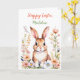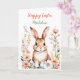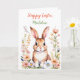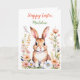 Sötkanin och blommor, vattenfärgad kanin, Söt, korall, rosa och grönt av blommor. Söt Påsk citat. Cute-kort för ett barn. Insidan är en färgsida. Personlig Påsk-kort.