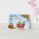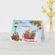 Personlig God Jul och Gott Nytt År Gatlykta, retro vintage släde och vacker hörnkrans grafik, lägg bara till ditt familjenamn på insidan av kortet i anpassningsområdet.