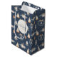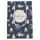 Fira säsongen i stil med den här elegant personligens julklapp. Med en fin vattenfärg mönster av ljus, prydnadsföremål, vrak och presenter på en marin blå bakgrund. Perfekt för inslagning av presenter, party favors eller företagsgåvor.