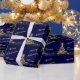 Den här marinblåa personligen och guld God jul som slår pappert har en guld-ton-jul eller träd med rosett band och stjärndamm på den. Om du behöver matchande artiklar, eller om du behöver hjälp eller ändringar, e-post niteowlstudio@gmail.com.