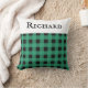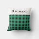 En snyggt dekorativ kudde för en säng, stol eller soffa, mönstrad med en klassisk buffelplatta i grönt och svart. Överst finns ett vitt band, med namn i svart versaler. Buffertbojkotten är en attraktiv och nyttig gåva till vänner, familj och kolleger vid jul och hela året.