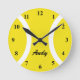 Personlig gul tennisbollväggklocka för tennisspelare, tränare och fans. Lägg till egen text som en rolig slogan, idrottscitat, skämt, talesätt eller namn. Neutral design som passar både pojkar och flickor.