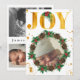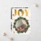 Personligt guld bebis första jul fotot meddelande. Vacker elegant akvarell med tallgrenar, kottar och järnek. Du kan anpassa texten och lägga till dina favoritbilder. Falsk guld digital effekt.