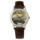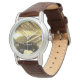 Personlig guld och bruna läderkvinnors lyx armbandsur