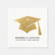 Denna enkla och moderna examensfestliga pappersservett har en stor falsk metallisk guld folie examenshatt med tofs centrerad på designen för en ren och förhöjd look. Guld folieeffekten lägger till en touch av glans och sofistikering utan att överväldiga designen. Under hatten visas examenstagets namn, följt av examensår och skolnamn i krispiga, lättlästa teckensnitt som håller allt polerat och balanserat.