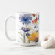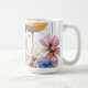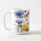 Frodiga, handmålade akvarellblommor i nyanser av guld, gult, rödbrunt och blått täcker denna personliga presentmugg. De höstfärgade amerikanska ängsblommorna visar en terrakotta-margareta med gul mitt och blommor i vackra nyanser av blått och guld, tillsammans med rött och grönt, samt disiga gråtoner och guld. Texten är skriven med en mörk denimblå font som ger en country-western-känsla. Det är enkelt att ersätta våra platshållare med dina egna detaljer. Klicka på länken "personalisera" för att skapa en fin present till brudtärnor och andra som hjälper till på din bröllopsdag (den passar ihop med vår Fall Wildflowers Wedding Suite) eller när du vill ge en minnesvärd souvenir till äl