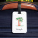 Den här personlig bagagetaggen har handflatan träd, sträng ljus med snyggt skripttypografi, enkelt anpassade. Ursprunglig vattenfärg © Michele Davies.