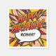 Personifiera namnet för att skapa en unik födelsedagsservett. En rolig, cool och trendig retroserie inspirerad av popkonst, en födelsedagspresent som sätter wham, zap, pow i vilken superhjältes födelsedagsfirande som helst. Designad av Thisisnotme©