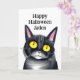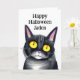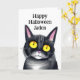 Personlig Halloween-för barn. Inuti kortet finns en färgsida till färg. Svart kattgrafik.