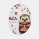 Ta med er lycka till i träd med den här personligen julprydnaden, en del av de engelska vintersamtalen. Med en julhedgehog som bär en mysigt svettare mot en vit bakgrund med känsligt snöflingor blir detta prydnadsföremål en hjärtslitande för barn, familjer eller djur älskare. Anpassa till namn och år om du vill skapa en dekoration av typen en i flera år till komen. Perfekt som lagerhållare, presentlagerhållare eller märkre av familjekarakteristik Se mer från den här : https://www.zazzle.com/store/north_pole_boutique ♡