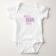 Söt "Hello Baby Olivia" personlig babybodysuit i rosa och lila text. Bra idé för bebisannonseringsfoton. Present till babyfest.