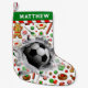 Kreativets fotbolls-julstrumpor och unika helgdag-dekanter med fotboll, helgdag och kakor. Om du vill anpassa redigeringstexten så att du kan lägga till namn i din favoritfotbollsspelare, tränare eller fotbollslag sportfantast.