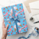 Denna coola sommarpersonliga vattenfärgspapper kännetecknas av jordgubbar och jordgubbsglasskoner på en himmelblå bakgrund. Jag målade för hand glasskonerna och jordgubbarna på papper med penslar på det gammaldags sättet. Den blå färgen gör det här mönstret bra för både pojkar och flickor. Din personliga text visas i en skrivstil-typografi i ett koordinerande rosarött band. Perfekt för födelsedagar och helgdagar såväl som vardagspresenter!