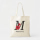 Personlig i monogram, redigerbar M-textröd blomma Tygkasse