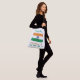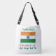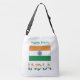 Väska över kroppen med Indienflaggan med INDIA i fet trikolor bokstäver och utrymme ovanför för ett personligt namn i grönt. Lätt och enkel att bära för daglig användning. En meningsfull present till mors dag, faders dag, inflyttningsfirande, familjeåterföreningar, Diwali, självständighetsdagen eller firande av indiskt arv.