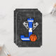 Rolig basketdesign för den unga basketspelaren eller basketfantasten. Funktioner bokstaven J i blå och vit lagfärg med basketbollar och höga basketbollar. Bakgrunden har en svart tavla design med baskettermer och bilder