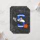 Rolig basketdesign för den unga basketspelaren eller basketfantasten. Visa bokstaven S i blå och vita lagfärger med basketstövlar och basketboll. Bakgrunden har en svart tavla med baskettermer och bilder