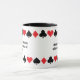 Den lekande designen visar de fyra kostymerna av spelkort: hjärtan, klubbar, diamanter och spader, som återges i träffande röda och svarta nyanser, tillsammans med två typografi av anpassade fält som för närvarande lyder "Hjärtans och klubbarnas diamanter" och "En paradox i kostym, där mysterium är." Anpassa den här roligten och inspirerande mugg eller köp som det är. Om du vill ha speciella förfrågningar eller frågor kontaktar du konstnären på wafadahdalcreates@gmail.com. © Wafa Y. Dahdal - Med förbehåll för alla Höger. WD Art