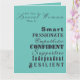 Utformningen är en minimalistisk, uttrycksfull typografi som har vissa egenskaper hos underbara kvinnor, bland annat Oberoende, Smart, stödjande, tillitsfull, empatisk, motståndskraftig och passionerad. De tre rubrikerna fält som för närvarande lyder "för en speciell kvinna som är" samt budskapet på insidan av kortet som lyder "Tack för allt du gör" är anpassadet om du vill personalisera budskapet till den speciella kvinnan i ditt liv. Om du vill ha speciella förfrågningar eller frågor kontaktar du konstnären på wafadahdalcreates@gmail.com. © Wafa Y. Dahdal - Med förbehåll för alla Höger. WD Art