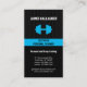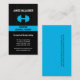 En grafiskt djärv visitkort för en personlig instruktör, idrottshallägare eller lagledare. En silhouette av ljusa stativ för en blåtthantel ut mot bakgrunden för riksvartstreck. Ditt titel- eller affärsnamn sitter i den slå blåttpuben under med din information om kontakten som är nedanför mot riksvart. Tillfoga någon extra information på denfående baksidaen. Tillgängligt i omväxlande färger med att matcha produkter.