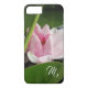Elegant iphone case med rosa och vit Vatten Lilly blomsterfotografi och monogram.