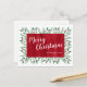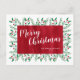 Elegant och modern julkortdesign med röd akvarellbakgrund och julblommor. Den nedre texten kan ersättas med din egen.