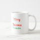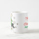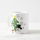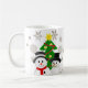 Anpassa denna söta snöman och julgran kaffekopp med ditt namn och högtidliga hälsning. Denna kopp har också silver snöflingor.