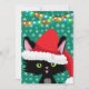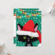 Den här fina juldesignen har en grönt och vit snöflingbakgrund, den finaste julkattungen med en julhatt och festive helgdag string ljus.
