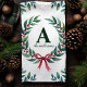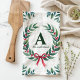 Fira säsongen med stil med denna personliga julhandduk i köket med en festlig julkrans prydd med järnek och bär, komplett med en anpassningsbar monogram och familjenamn. Denna eleganta design, accentuerad med en röd banderoll, tillför en touch av julstämning till din köksdekor. Perfekt för julbakning, matlagning eller som en genomtänkt julpresent till vänner och familj.