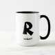 Utforma personlig mugg med ett monogram och namn i klassiskt svartvitt. Anpassa färgen för bakgrund och text med hjälp av anpassningsfunktionen. Den här mallen ger en tankeväckande gåva till pojkvänner, make, söner, pappor, brudar eller bästa män som passar för tillfälle som födelsedagar, bröllop, jul eller studenten.