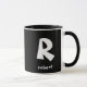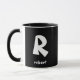 Utforma personlig mugg med ett monogram och namn i klassiskt svartvitt. Anpassa färgen för bakgrund och text med hjälp av anpassningsfunktionen. Den här mallen ger en tankeväckande gåva till pojkvänner, make, söner, pappor, brudar eller bästa män som passar för tillfälle som födelsedagar, bröllop, jul eller studenten.