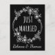 Personlig "Just Married" Svart Bröllopsblomma Meddelande Vykort