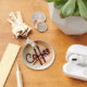 Kaffekakedja för baristas och kaffe älskare. Framsidan av den runda nyckelkedjan är dekorerad med ett foto av en toppvy av kaffet kopp med ord-kaffet skrivet över skummet. Baksidan är enkel och visar två linjer anpassningsbar text, perfekt för att sätta ditt namn på den och göra nyckelkedjan unik.