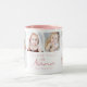 Skapa ett keepsakefoto mugg för en mormor som har 4 bilder och titeln KÄRLEK DU NANA i ett modernt handskript som accentueras med hjärtan med sitt barnbarns eller barnbarns namn eller ditt anpassningsbar-budskap. All text och färg kan ändras. Gör en meningsfull keepy för en mormor för hennes födelsedag, en första gång mormor, morföräldrar eller helgdagarna. I exemplet visas rosa på en vit bakgrund med handtaget för mugg och inuti färg som rosa. ASSISTANS: Om du vill ha hjälp med designändring, anpassning, ändring av färg eller överföring av designen till en annan produkt kontaktar du designern FÖRE ORDERING via Chattan Zazzle MESSAGE eller e-post makeitaboutyoustore@gmail.com.