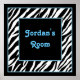 Personlig Barns väggdekoration. Sassy dekorativ poster för din tonåring eller tonåring diva i förväg! Svart och vitt zebra ränder med blå text och accenter.