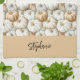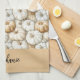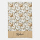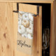 Personlig kökshandduk med falltema. Handduken dekoreras med en upprepande vattenfärg mönster i blekens orange och vita pumpor. I grund finns det en beige-panel med ditt namn i ett handskrivet teckensnitt för snyggt, skapar anpassadet. Det övergripande utseendet är festligt, säsong och perfekt för höstmatning eller helgdag.