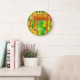Klocka med illustration av mönstrad giraff i akvarell. En färgrik och rolig klocka som passar perfekt i alla rum i ditt hem, inklusive lekrum och småbarnsrum. Design av Julie Nicholls©
