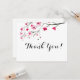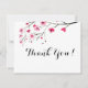 Vattenfärg körsbärsblommor med ett elegant skript, kalligrafiskt teckensnitt "Tack"-kort. Anpassa denna design för dig själv med en speciell hälsning och dina namn.
